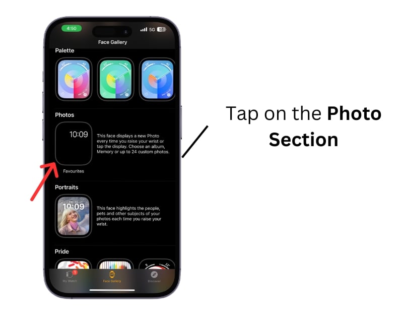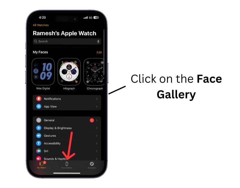 - 2단계: Face Galley를 탭 하고 애플 워치에 추가하려는 시계 모드 를 선택하세요.
