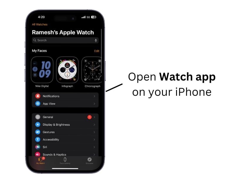 - 1단계: iPhone에서 Watch 앱을 엽니다 Apple Watch가 iPhone의 Watch 앱과 페어링되어 있는지 확인하세요.