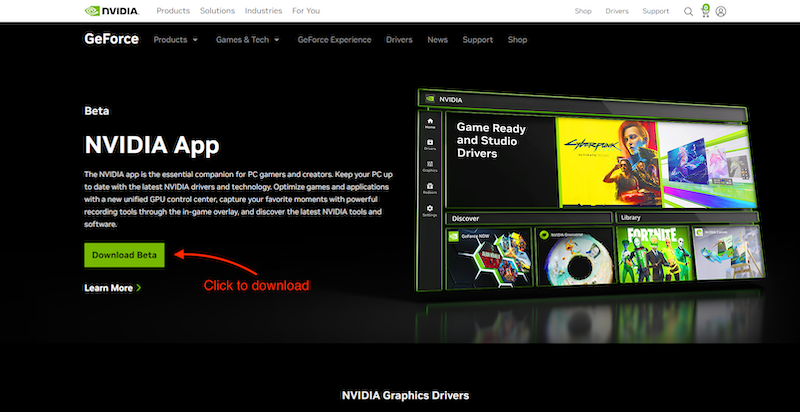 - Nvidia 웹사이트( Nvidia App) 에서 Nvidia 앱을 다운로드하세요.
