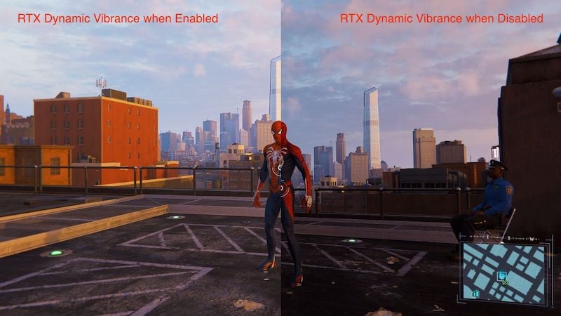RTX Dynamic Vibrance는 아마도 우리가 앱에서 사용한 최고의 기능일 것입니다. 모든 것을 빛나게 만들어줍니다. 플레이어가 게임의 요소를 더 잘 인식할 수 있도록 하고 게임을 매우 매력적으로 보이게 만드는 AI 필터입니다. Nvidia에 따르면 색상에 문제가 없도록 기능의 균형을 맞추었습니다.