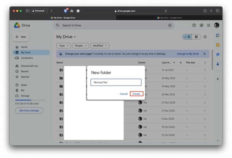 먼저, 다른 계정으로 이동하려는 모든 파일을 드라이브의 단일 폴더로 통합하세요. 이렇게 하면 개별 파일을 처리하는 데 드는 골치 아픈 시간을 절약할 수 있을 뿐만 아니라 시간도 절약할 수 있습니다. 이를 수행하려면 아래 단계를 따르십시오.