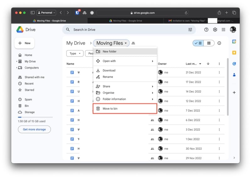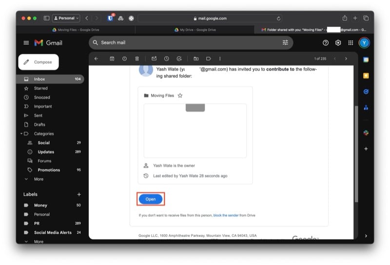 - 이메일에 있는 새 드라이브 폴더 링크를 클릭하여 초대를 수락하고 폴더에 모든 파일이 있는지 확인하세요.