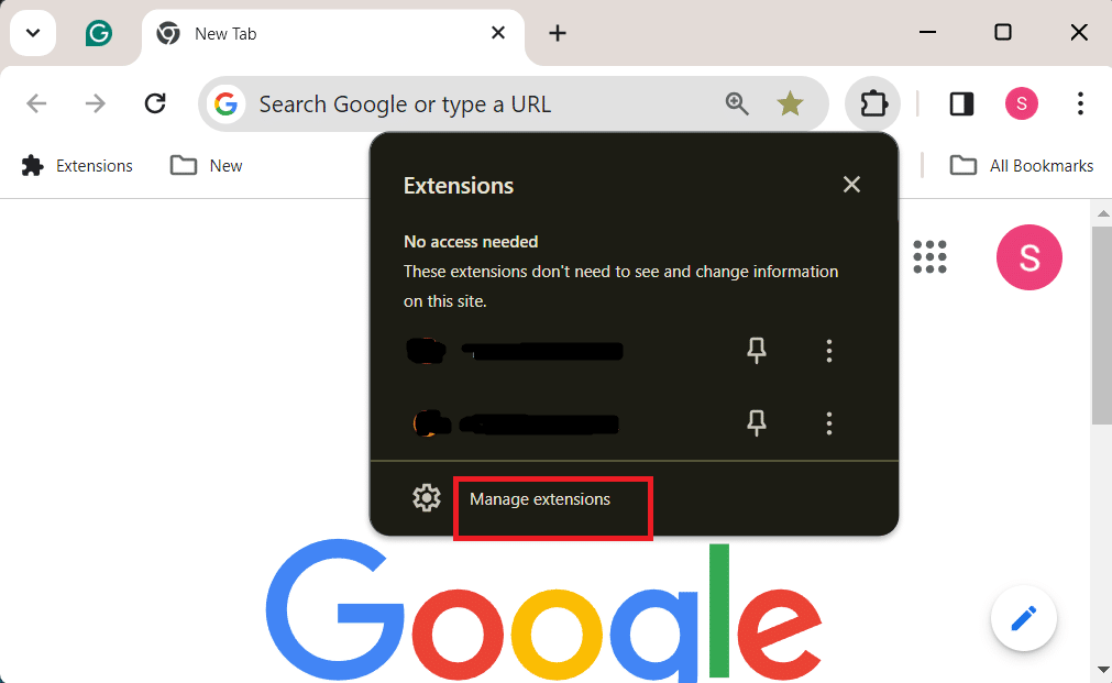 - 확장 아이콘을 클릭 하고 확장 관리 를 선택합니다