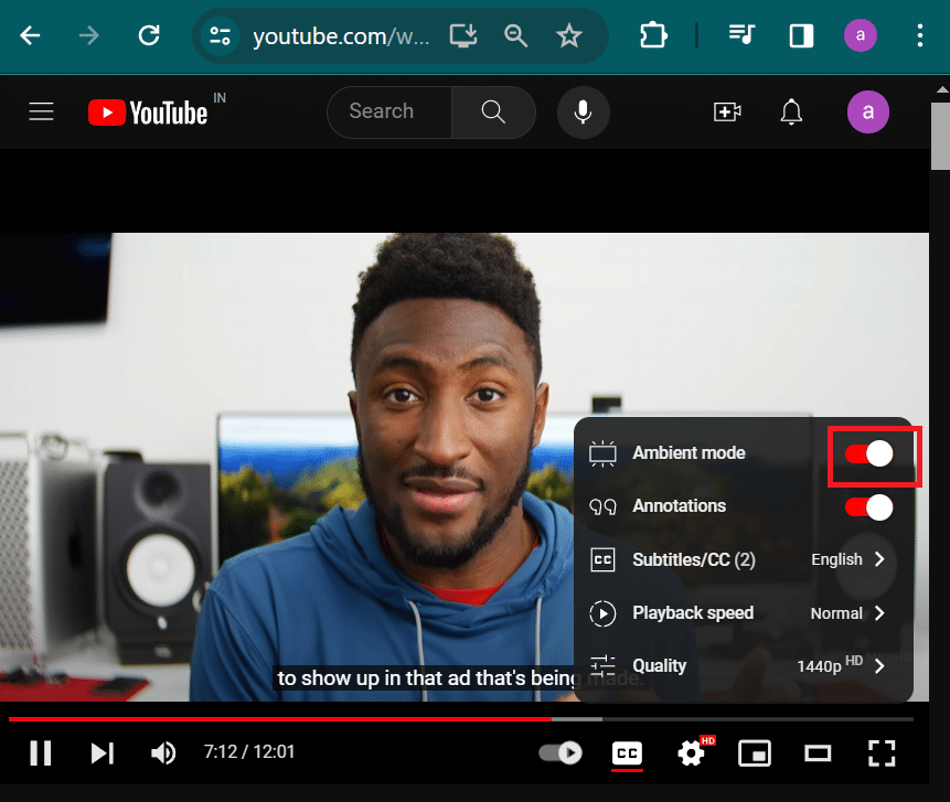 대기 모드는 유튜브 UI를 현재 동영상의 색 구성표로 변경합니다. 이 조명 효과는 시청 경험을 향상시키지만 버퍼링 문제를 일으킬 수 있습니다