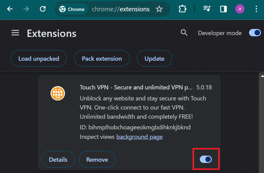 - VPN 확장 프로그램을 찾아 토글을 클릭하여 비활성화하세요.