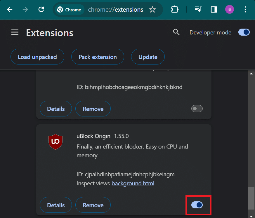 - 비활성화하려면 광고 차단 확장 프로그램의 토글을 클릭하세요
