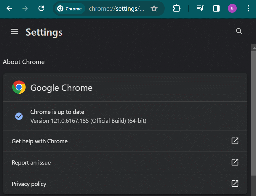 - URL 표시줄에 chrome://settings/help를 붙여넣고 Enter를 누르세요