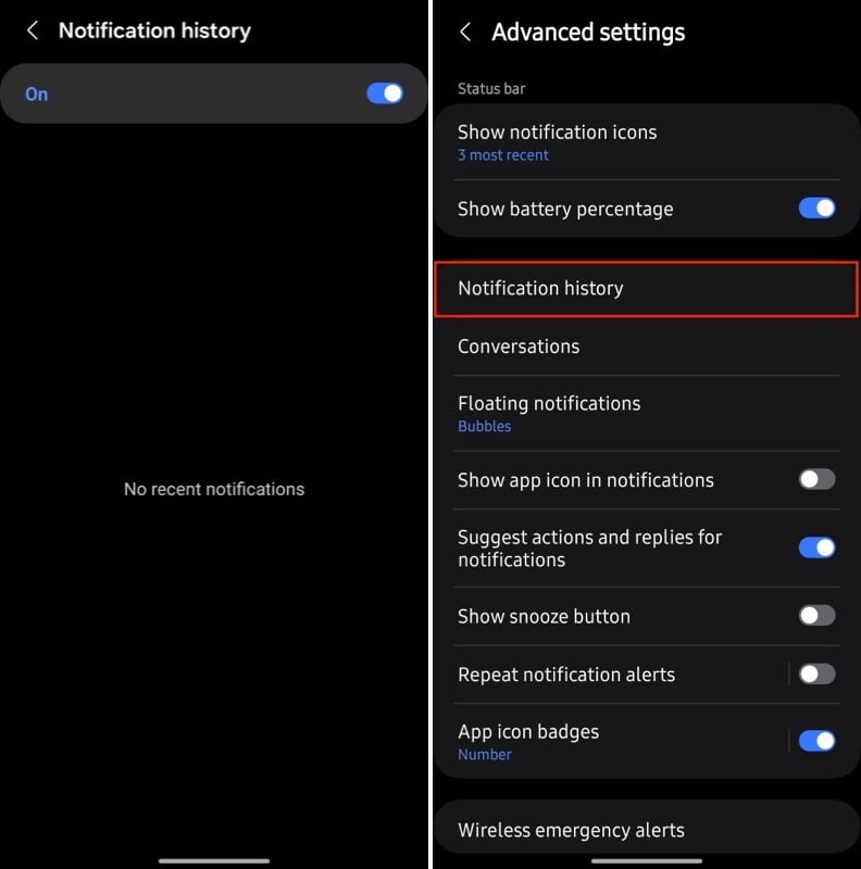 단, 휴대폰에서 One UI의 알림 기록 기능을 미리 활성화한 경우에만 작동합니다. 그렇지 않다면 운이 좋지 않은 것입니다. 지금 할 수 있는 최선의 방법은 비슷한 상황이 다시 발생하지 않도록 삼성 휴대폰에서 알림 기록을 켜는 것입니다.