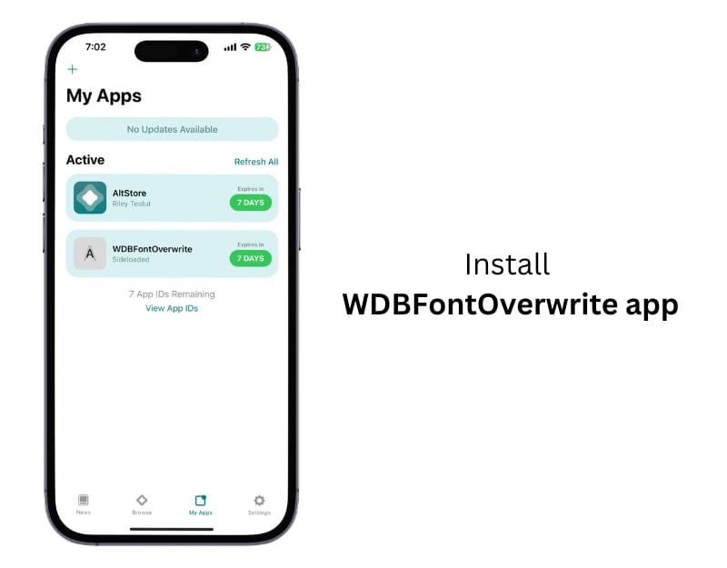 글꼴을 변경하려면 WDBfontoverwrite 앱을 사이드로드하고 iPhone에 설치해야 합니다. ALTStore를 사용하여 iPhone 앱을 사이드로드하는 방법에 대한 자세한 가이드가 있습니다. 전체 단계별 시각적 가이드를 볼 수 있습니다. 시간을 절약하기 위해 iPhone에 글꼴 앱을 사이드로드하고 설치하는 방법은 다음과 같습니다.