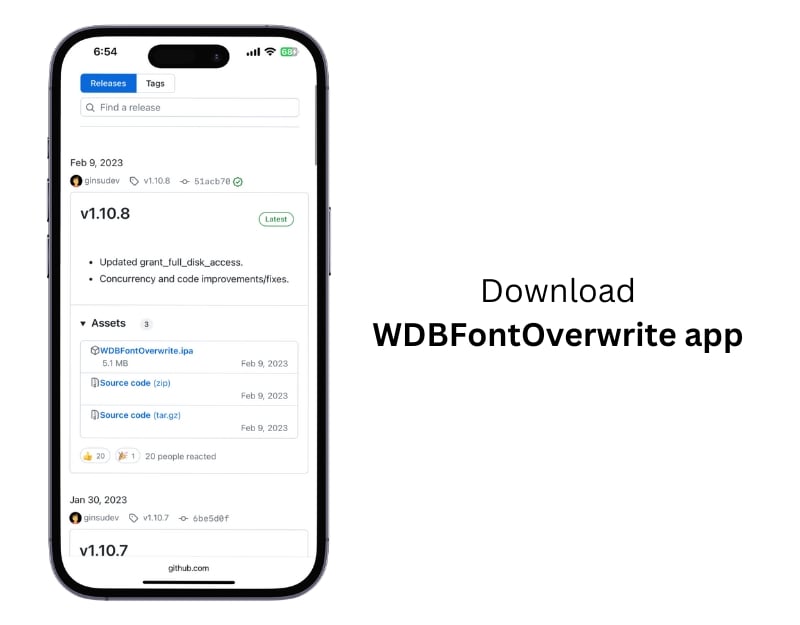 - 6단계: 이 페이지 로 이동하여 iPhone에 WDBfontoverwrite 앱을 다운로드하세요
