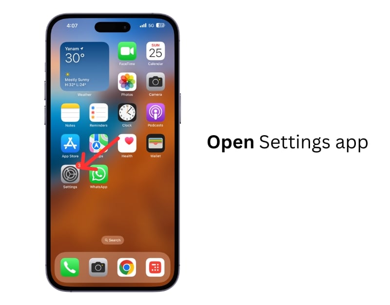 - 4단계: iPhone에 글꼴이 추가되었는지 확인하려면 iPhone에서 설정을 엽니다.