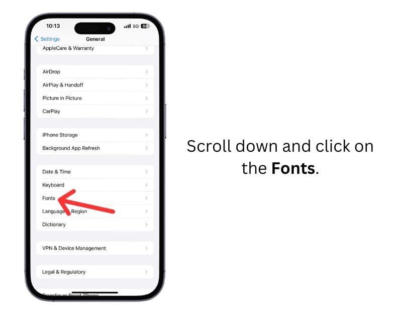 - 6단계: 아래로 스크롤하여 글꼴을 클릭합니다 .