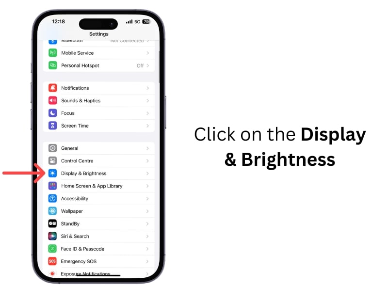 - 2단계: 디스플레이 및 밝기 로 이동합니다 .