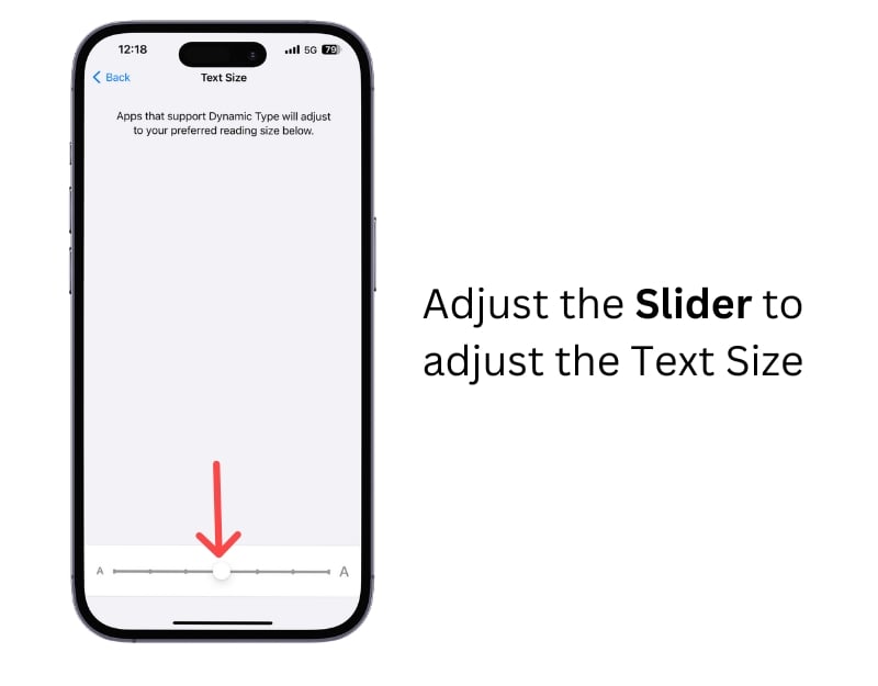 - 4단계: 사이드바를 스크롤하여 글꼴을 조정합니다. 왼쪽은 글꼴 크기를 줄이고 오른쪽은 글꼴 크기를 늘립니다