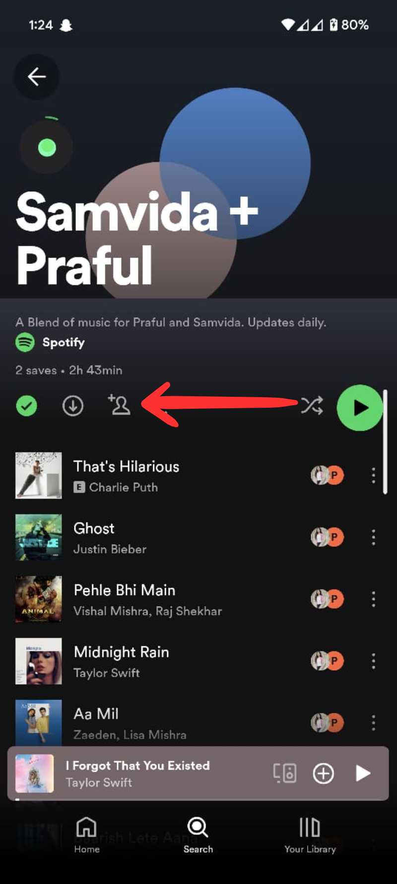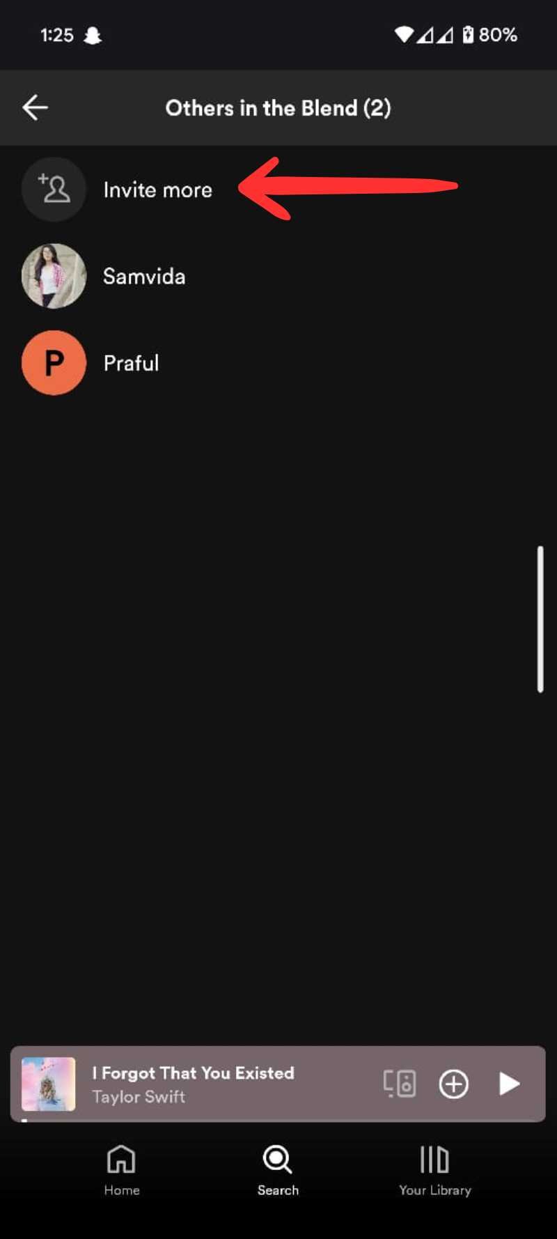기존 Spotify Blend 재생 목록이 이미 있는 경우 재생 목록에 더 많은 친구(최대 10명)를 쉽게 추가할 수 있습니다. Spotify Blend 재생 목록에 더 많은 친구를 추가하는 방법은 다음과 같습니다.