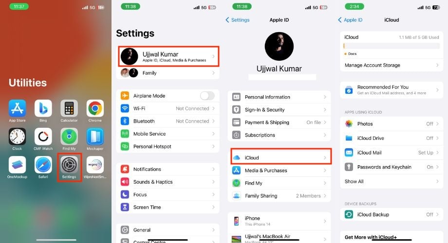 iCloud 백업을 비활성화했다가 다시 활성화하면 iPhone과 iCloud 간의 동기화 프로세스가 새로 고쳐져 사소한 문제가 해결됩니다. 이렇게 하면 iPhone의 공간이 일시적으로 확보되어 특히 저장 공간이 거의 가득 찬 경우 인덱싱 성능이 향상될 수 있습니다. 그렇게 하려면 아래 단계를 따르십시오.