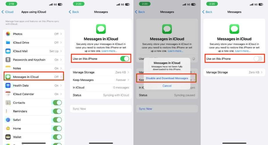 iPhone 메시지 인덱싱에 문제가 있는 경우 iCloud 메시지를 껐다가 다시 켜보세요. 그러면 인덱싱 프로세스가 다시 시작될 수 있습니다. 메시지가 비활성화되어 있는 동안에는 iCloud에 연결된 다른 Apple 기기에서 새 메시지를 볼 수 없다는 점을 기억하세요.