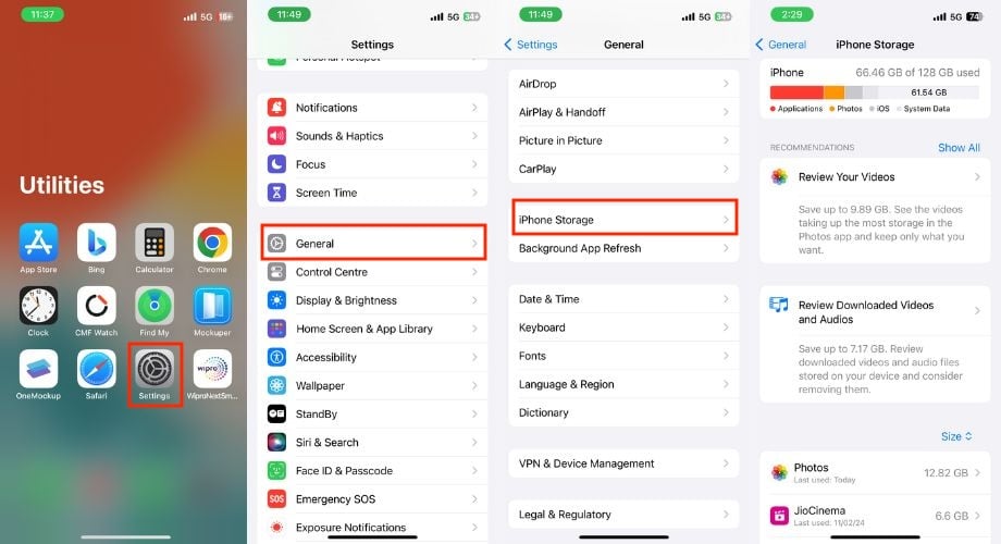 가득 차거나 거의 가득 찬 iPhone은 메시지 검색을 포함한 다양한 작업 속도를 저하시킬 수 있습니다. 보다 빠른 검색을 위해 데이터베이스를 생성하는 인덱싱 메시지는 인덱스를 적절하게 유지하기 위해 저장 공간이 필요합니다. 따라서 iPhone의 저장 공간이 충분한지 다시 확인하세요. 부족할 경우 불필요한 데이터를 삭제하여 공간을 확보하세요.