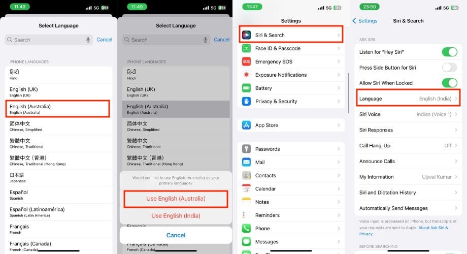 아이폰의 언어 설정이 메시지에 사용된 언어와 다른 경우(예: 영어를 시스템 언어로 사용하고 프랑스어 메시지를 받는 경우) 아이폰 메시지 인덱싱에 문제가 발생할 수 있습니다. 메시지의 주요 언어와 일치하도록 언어 설정을 조정하면 이 문제를 해결할 수 있습니다.