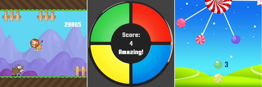 Single Tap Games는 하나의 앱에서 4가지 게임을 제공합니다. 모든 게임은 단일 탭이므로 이름이 붙여졌습니다. 게임은 플레이하기 쉽고 사이먼 컬러(Simon Color), 고트 이스케이프(Goat Escape), 미니사커(Mini Soccer), 캔디랜드(Candy Land) 등이 있다. Simon Color 게임에서는 색상 순서를 기억해야 하는 반면, Goat Escape 게임에서는 도중에 장애물을 피하면서 염소에게 계속 먹이를 주어야 합니다.