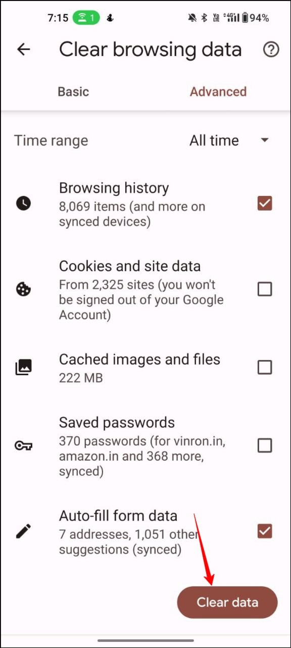 - 이제 검색 기록, 쿠키 및 사이트 데이터, 캐시된 이미지, 파일을 선택하고 아래의 데이터 지우기 버튼을 클릭하세요.