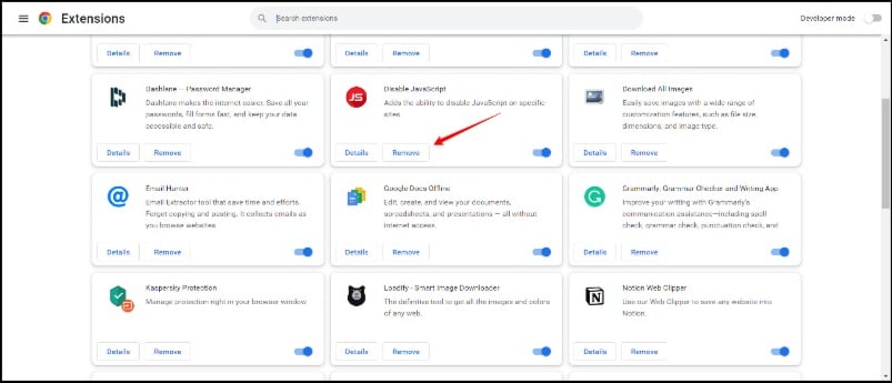 - 확장 프로그램 페이지로 이동하면 Google 크롬에 설치된 모든 확장 프로그램 목록이 표시됩니다.