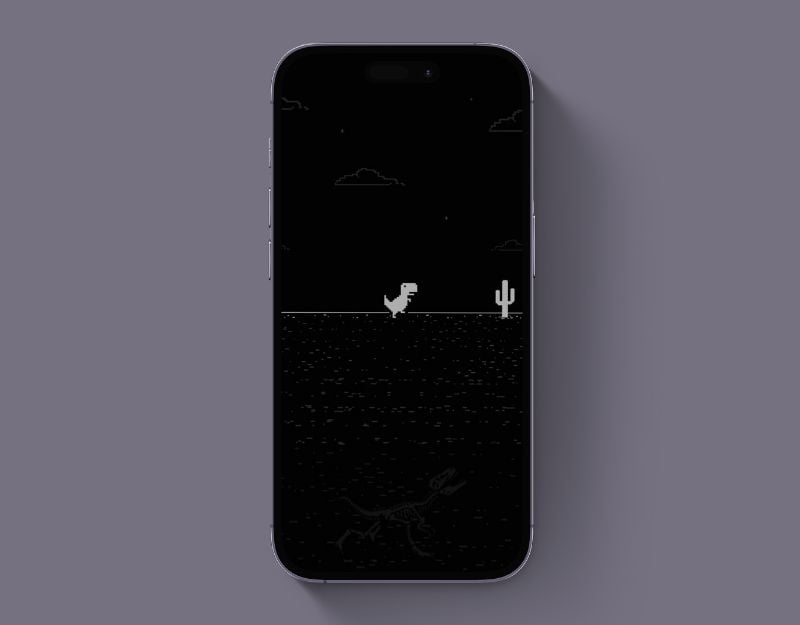 Chrome 공룡 게임은 인터넷 연결이 중단되었을 때 Google Chrome에서 플레이할 수 있는 인기 있는 오프라인 게임입니다. 이 배경 화면을 설정하면 사용자가 오프라인 상태임을 나타내며 다른 사람에게 사용자가 오프라인 모드에 있고 방해받고 싶지 않다는 신호를 보냅니다. 배경화면은 iPhone 홈 화면에 딱 맞는 어두운 배경과 함께 사막을 달리는 픽셀화된 공룡을 보여줍니다.