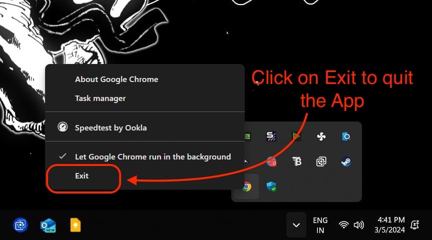 이 방법을 사용하여 종료할 수 있는 가장 좋은 앱은 연중무휴로 백그라운드에서 지속적으로 실행되는 앱입니다! Discord, Slack, Chrome과 같은 앱. 이러한 앱은 앱 창을 닫아도 백그라운드에서 계속 실행됩니다.