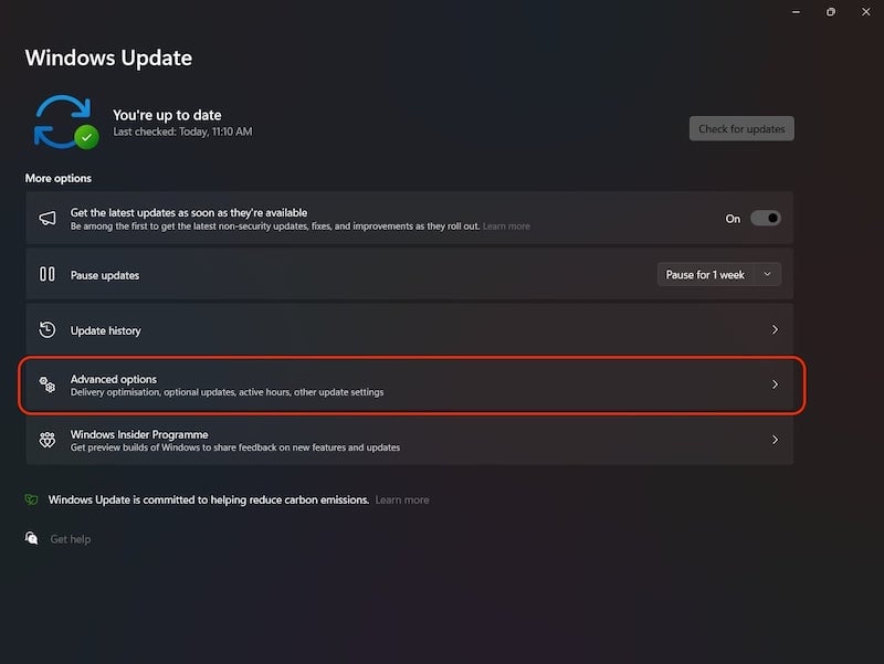 - 이제 '추가 옵션'에서 '사용 가능한 최신 업데이트 받기'를 선택 취소하세요. 이렇게 하면 Windows PC가 백그라운드에서 모든 업데이트를 다운로드하지 못하게 됩니다.