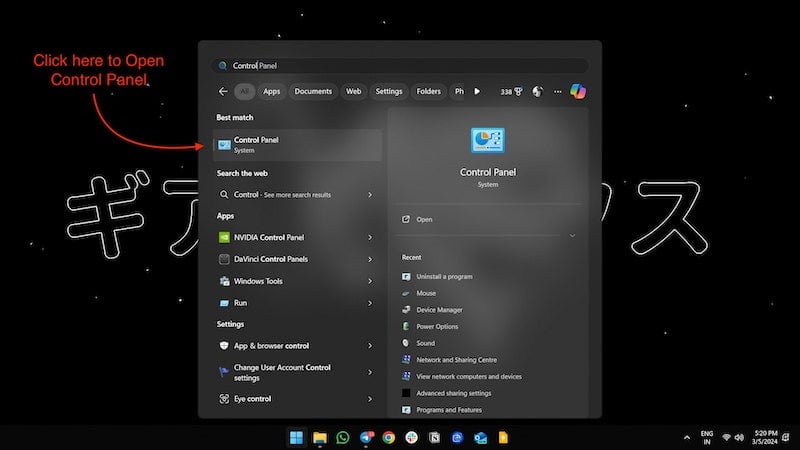- 키보드에서 윈도우 키를 누르고 제어판을 검색하세요.