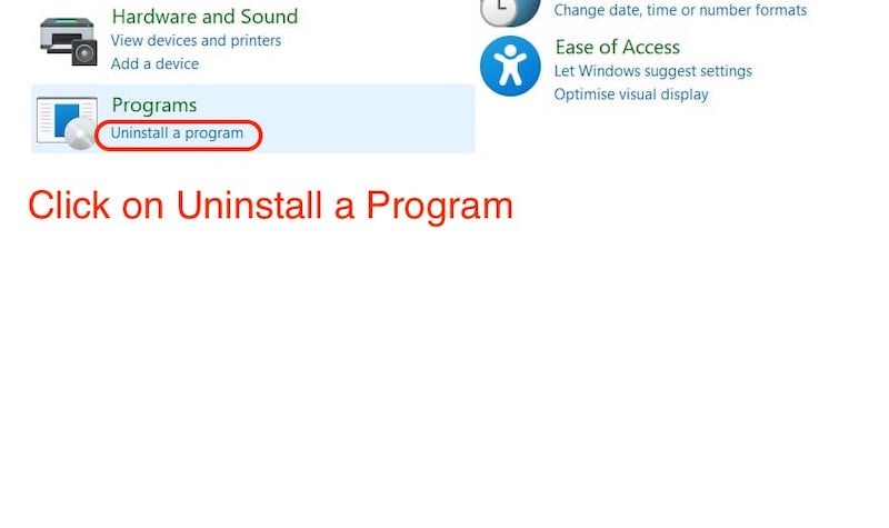 - 이제 프로그램 아래에서 프로그램 제거를 클릭하세요.