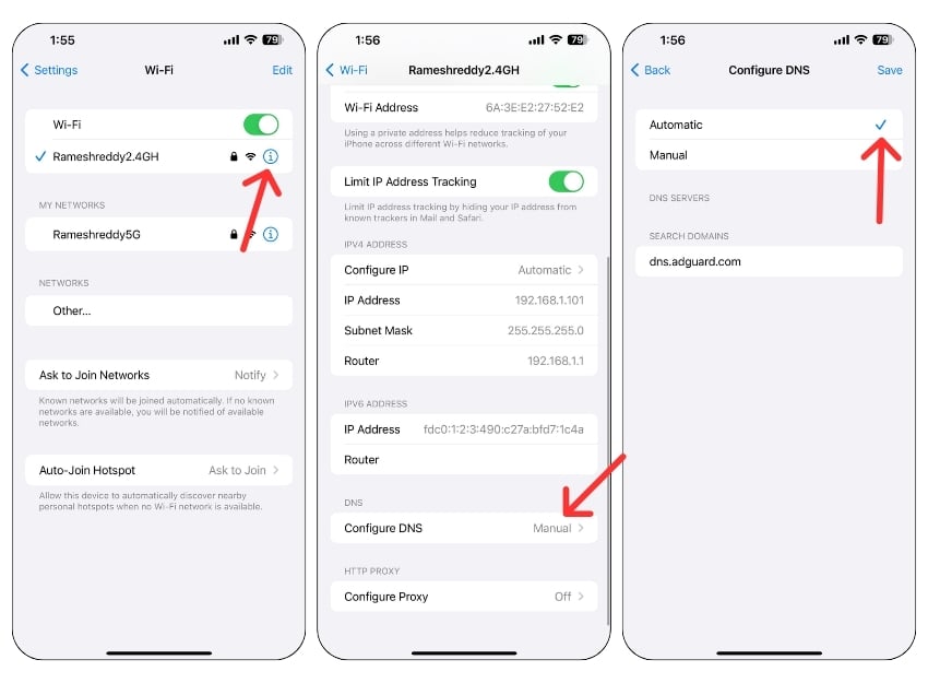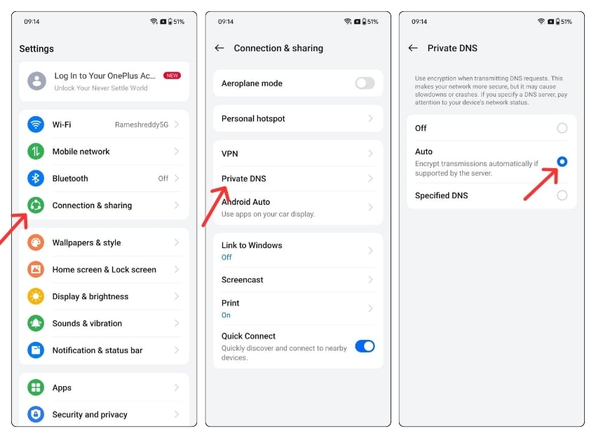 - 4단계: 사용자 지정 DNS를 사용하는 경우 자동을 선택합니다. (저는 AdGuard 비공개 DNS를 사용하여 Android 스마트폰의 광고를 차단합니다. 가끔 DNS 오류가 발생하므로 이 문제를 해결하려면 DNS를 제거하고 자동으로 변경해야 합니다.)