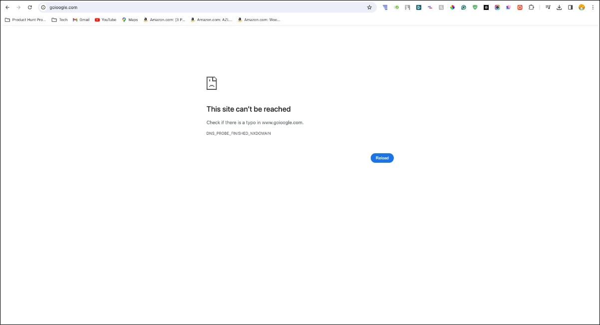 DNS_PROBE_FINISHED_NXDOMAIN 오류는 브라우저가 찾고 있는 웹사이트의 IP 주소를 찾을 수 없을 때 발생합니다. 웹사이트 도메인을 입력하면 브라우저는 일치하는 IP 주소를 찾기 위해 DNS(Domain Name System)에 요청합니다. 이 오류는 DNS 서버가 도메인 이름(NXDOMAIN, '존재하지 않는 도메인'을 나타냄)을 찾을 수 없는 경우 발생합니다. 입력한 도메인이 존재하지 않거나 DNS 구성에 문제가 있기 때문일 수 있습니다.
