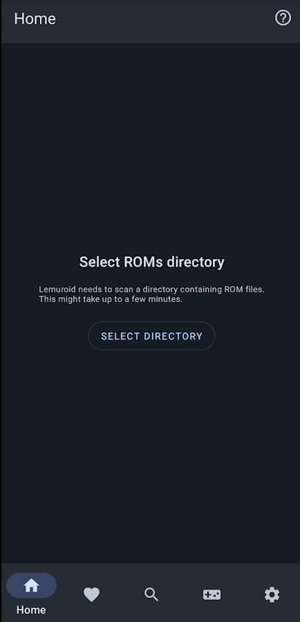앱을 실행하고 디렉토리 선택 을 눌러 ROM 및 BIOS가 있는 폴더를 선택하세요 시작할 때마다 새 ROM 파일을 자동으로 검색합니다.