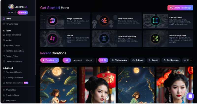 Leonardo AI는 기능이 풍부한 생성 AI 도구입니다. 많은 기능과 사용자 정의 옵션을 제공하기 때문에 디자이너와 게임 개발자에게 매우 인기가 있습니다. 10달러부터 시작하는 무료 요금제와 프리미엄 요금제가 모두 있어 상당히 예산 친화적인 AI 생성기입니다.