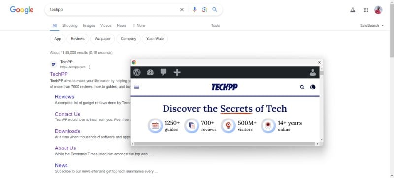 Google 크롬 링크 미리보기는 새로운 기능이거나 기존 기능의 업데이트된 버전입니다. 해당 링크를 열지 않거나 동일한 탭 내에서 웹페이지나 링크된 페이지를 작은 창에 표시합니다. 가장 좋은 점은 별도의 창에서 웹페이지 또는 링크된 페이지의 링크를 스크롤하고 상호 작용할 수 있다는 것입니다. 또한 Google Chrome 링크 미리보기 기능은 일반 모드와 시크릿 모드 모두에서 작동합니다.
