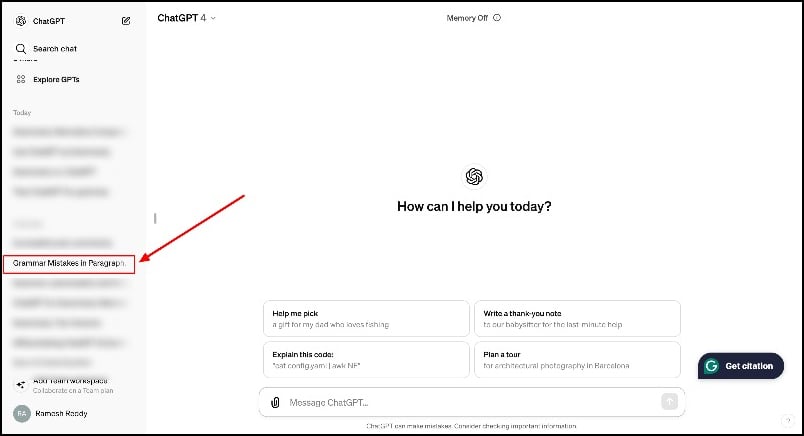 - 3단계: 기본 ChatGPT 웹사이트에서 ChatGPT 계정에 로그인했는지 확인하세요. 이제 텍스트를 복사하고 사이트에 들어가서 웹사이트를 수정하세요. 문법 오류에 대한 ChatGPT 사용 방법에 대한 FAQ입니다.