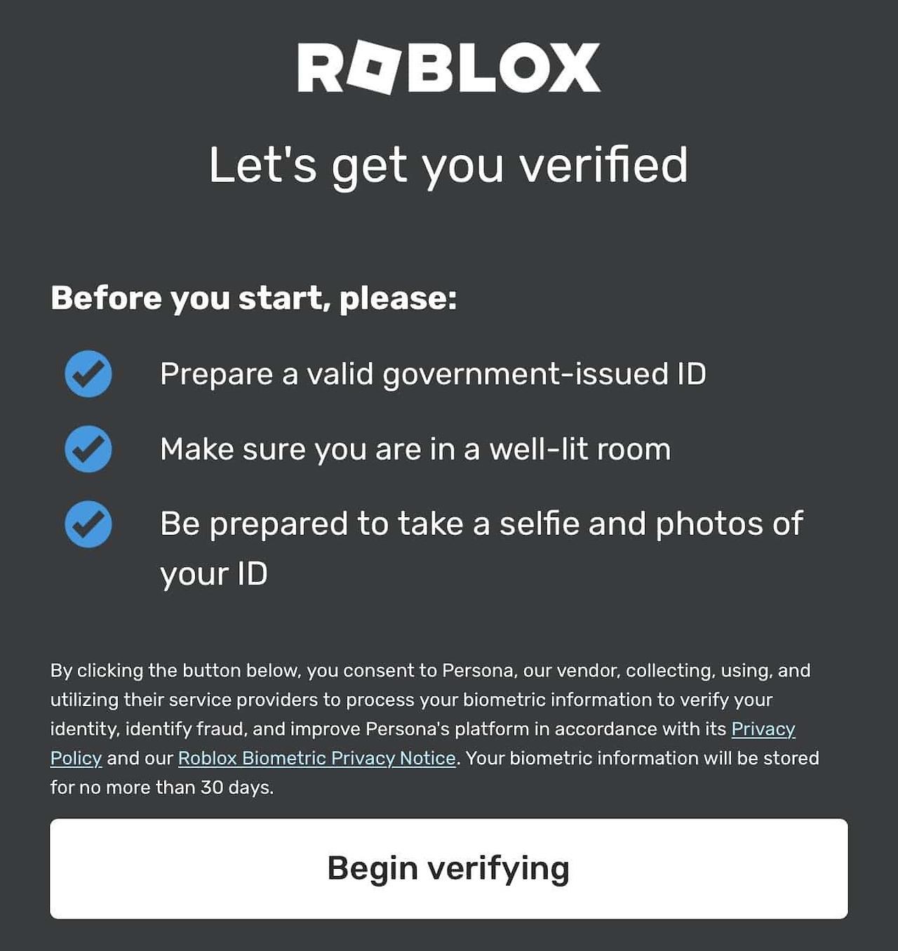 다음 섹션에서 소개할 Roblox에서 연령 ID를 확인하여 Roblox 음성 채팅을 사용하고 활성화하는 방법을 계속 읽어보세요