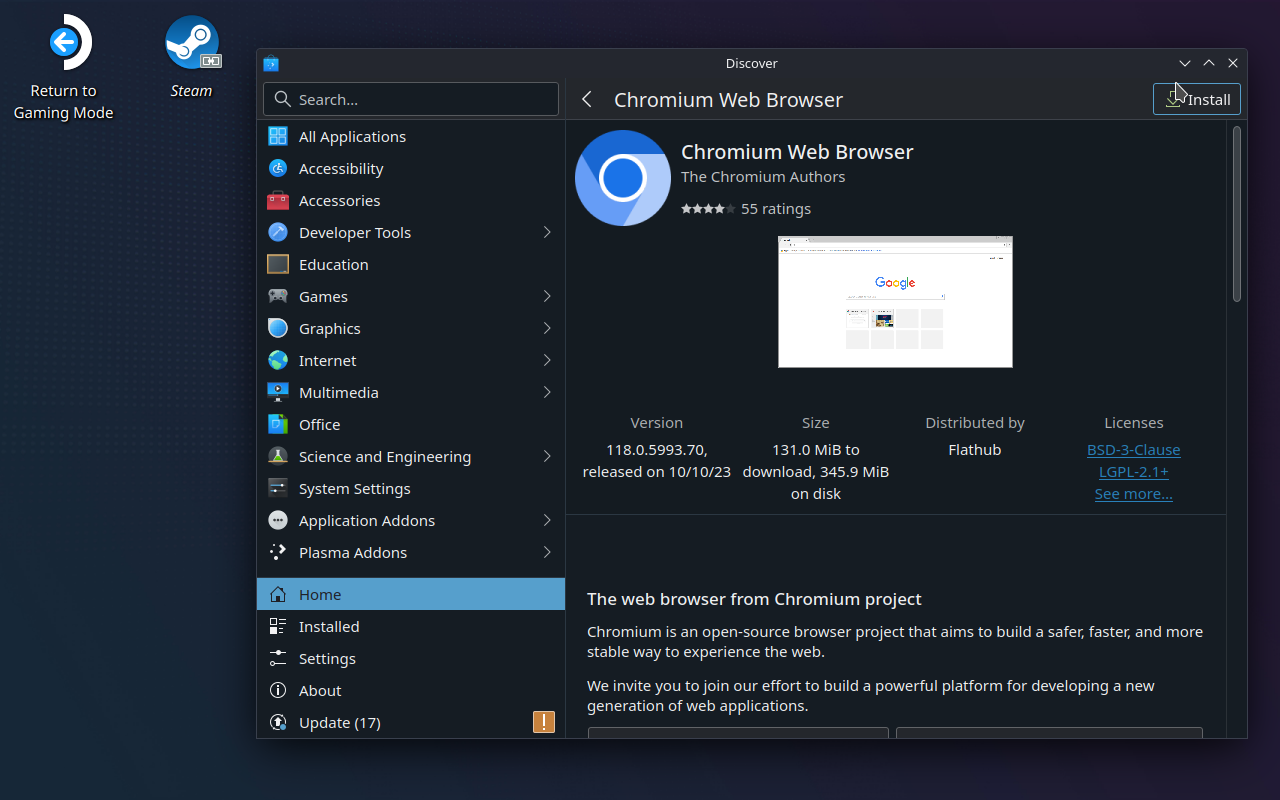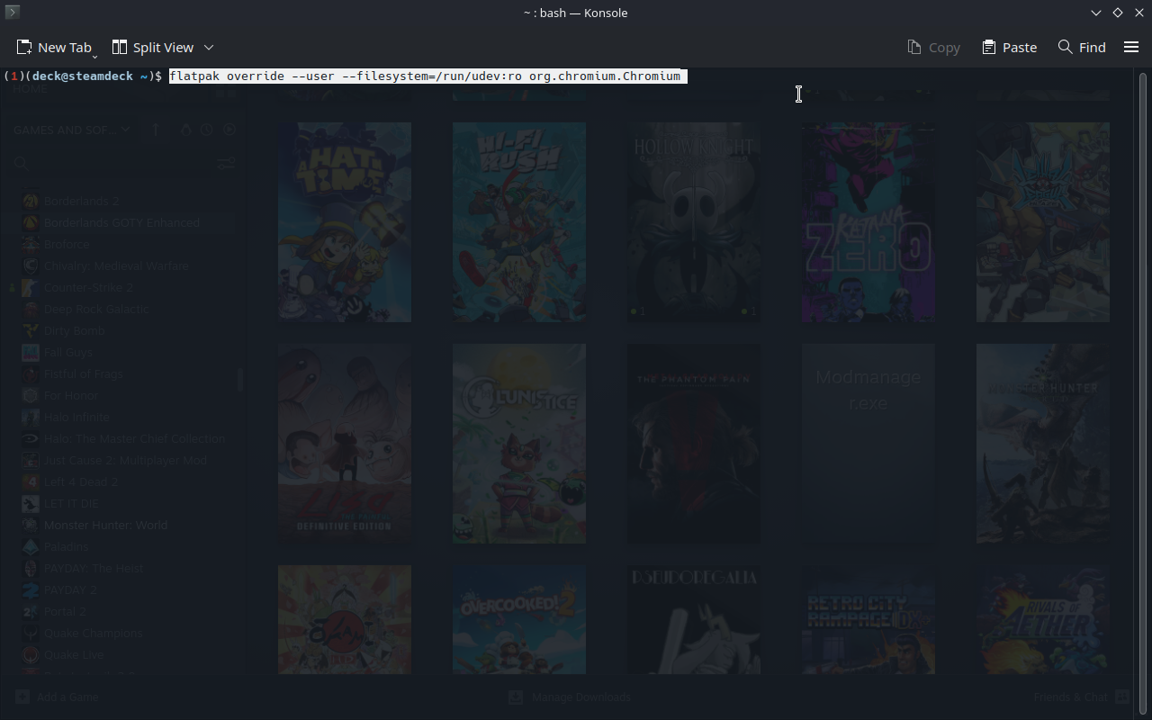 먼저 Konsole을 열고 " flatpak override --user --filesystem=/run/udev:ro org.chromium.Chromium "을 입력하거나 붙여넣습니다. 그런 다음 Enter를 누르십시오. 이 해결 방법을 사용하면 Chromium이 기본 Deck 게임패드 입력을 선택할 수 있습니다.