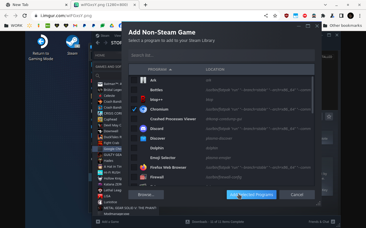 DOS_deck에 포함된 튜토리얼에서는 Chrome 또는 Edge Steam 바로가기를 DOS_deck으로 덮어쓰는 방법을 안내하지만 저는 이 접근 방식에 동의하지 않습니다. Chrome은 게임 모드 내에서 설치할 수 있는(그리고 최소한의 노력으로 설치해야 하는) 기본 Steam Deck 브라우저이며 저는 이 기능을 유지하고 싶습니다. Microsoft Edge를 DOS_deck의 일꾼으로 바꾸는 데에는 문제가 없지만 Edge는 Xbox Cloud Gaming on Deck 의 요구 사항 이므로 일부에게는 문제가 될 수 있습니다.