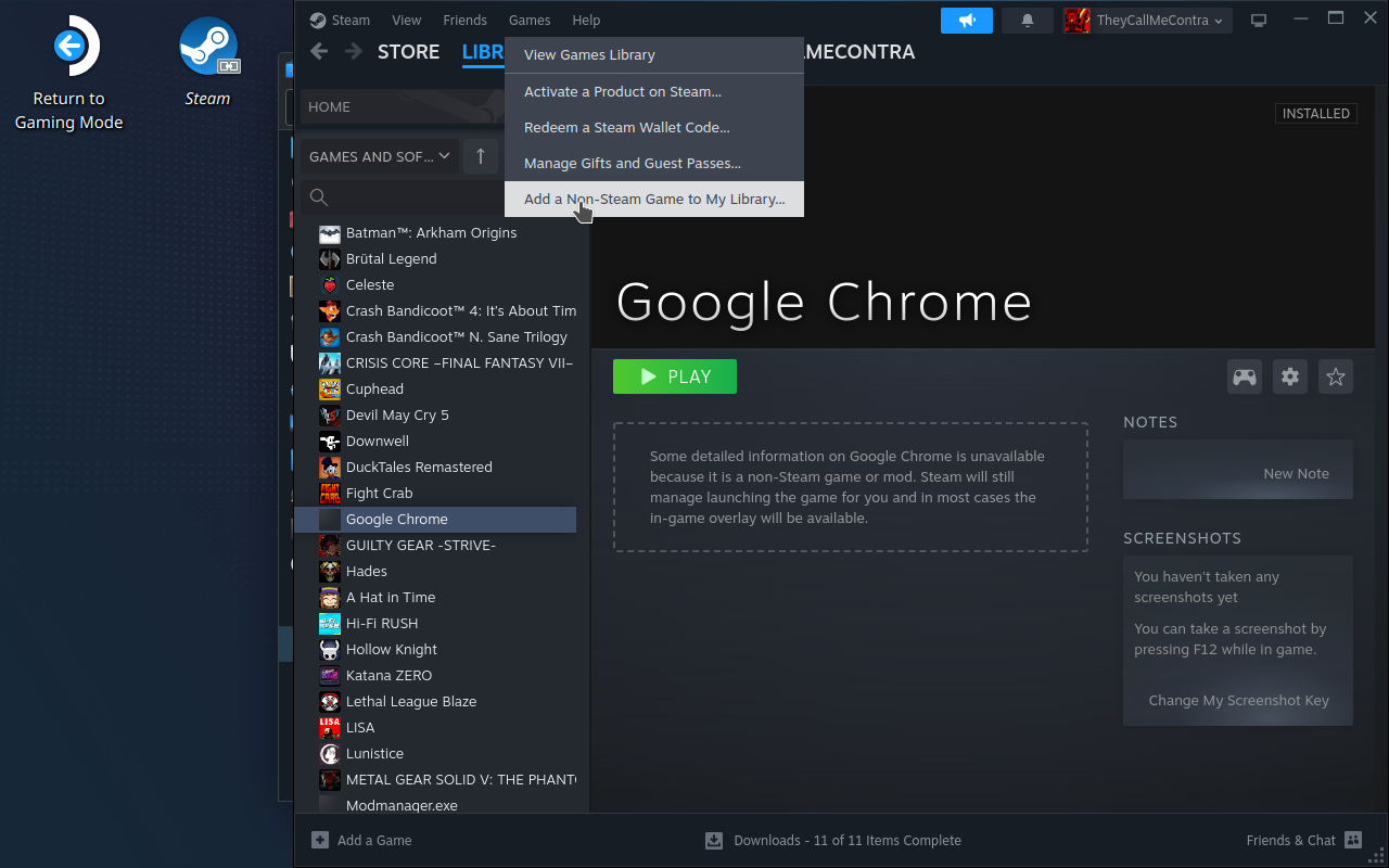 Chromium을 설치한 후에는 이를 Steam이 아닌 게임으로 Steam에 추가할 차례입니다. 이 작업을 수행한 후 지금은 Steam을 닫거나 최소화하세요.