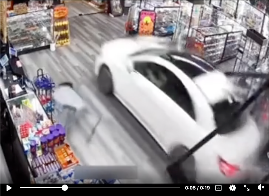 실제 보험 정책과 유사한 '자동차로부터 매장 정면을 보호하는 볼라드'라는 맥락에서 매장을 통과하는 이동 차량의 모습은 다음과 같습니다.