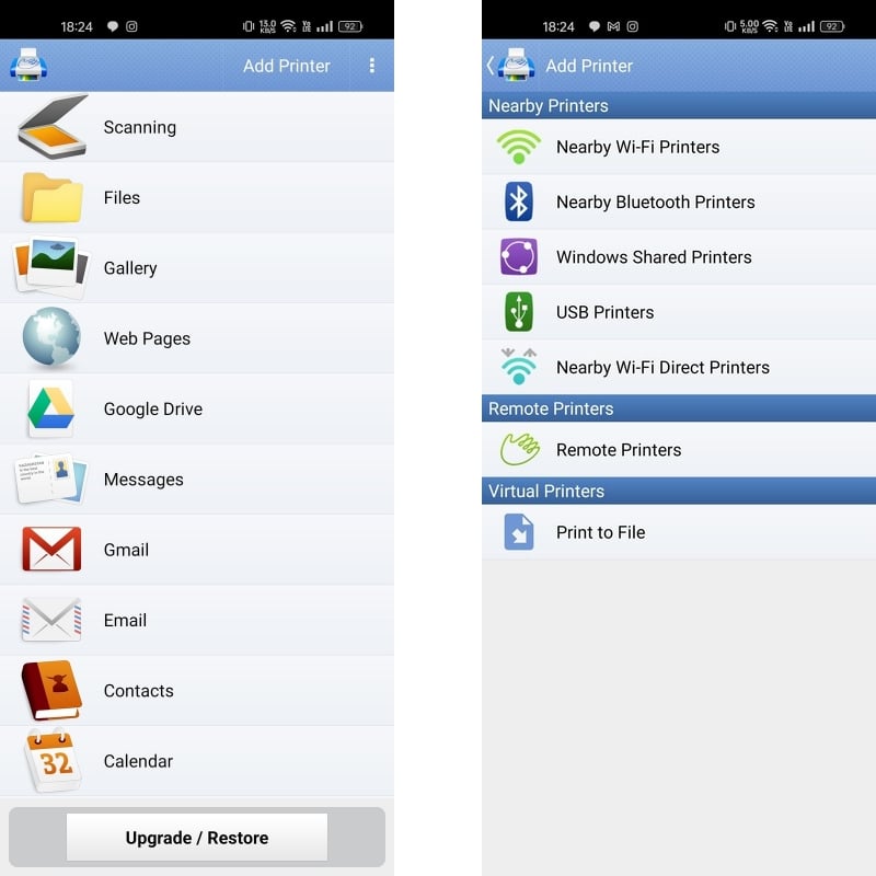 Smart Print는 기능이 가득한 애플리케이션이지만 무료 버전은 모든 단계에서 광고로 가득 차 있어 중요한 것을 인쇄하려고 할 때 매우 짜증스럽습니다. 그 외에도 문서 스캔, PDF로 인쇄, 웹 페이지 인쇄 등과 같은 기능이 있습니다. UI는 사용자 친화적이고 쉽게 탐색할 수 있지만 광고로 인해 약간 어렵습니다.