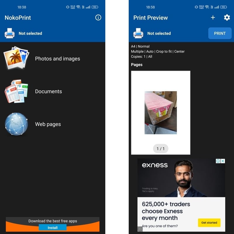 앱에 구운 광고가 있지만 방해가 되지 않으며 NokoPrint는 몇 번의 클릭만으로 인쇄 프로세스를 완료할 수 있을 만큼 빠릅니다. 또한 파일을 PDF로 저장하는 옵션도 있어 항상 디지털 사본으로 보관하는 것이 편리합니다.