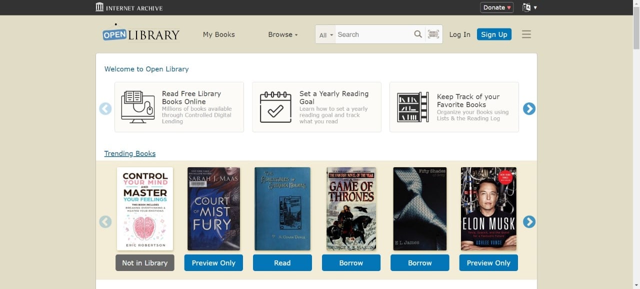 Open Library는 인터넷 아카이브에서 검색한 전자책을 가져오는 무료 전자책 검색 도구입니다. 검색할 수 있는 전자책 제목이 수천(심지어 수백만) 있으며, 인터넷 아카이브가 다소 혼란스러울 경우 Open Library를 사용할 수 있습니다.