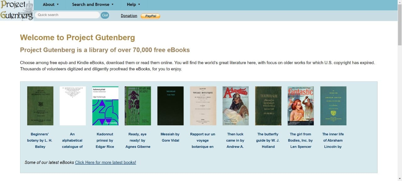 고전을 좋아하신다면 구텐베르크 프로젝트(Project Gutenberg)를 탐험해 보세요. 이 웹사이트는 1971년에 출시되었으며 70,000권 이상의 도서를 호스팅하는 세계에서 가장 오래된 디지털 도서관입니다.