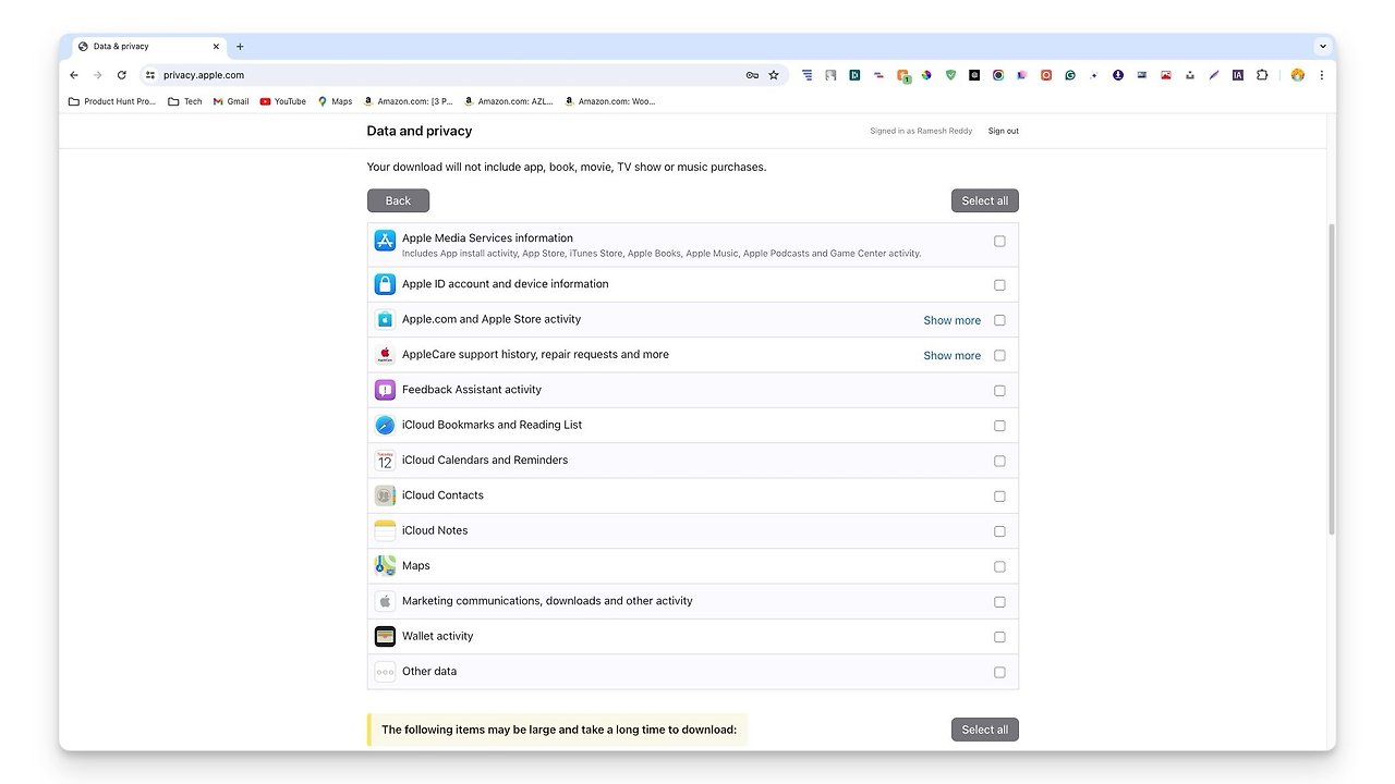 프로세스는 서비스마다 다릅니다. 일부 서비스에는 데이터를 다운로드하기 위한 공통 플랫폼이 있는 반면, 다른 서비스에는 데이터 다운로드 요청과 데이터 다운로드가 필요합니다. 이 가이드에서는 Amazon, Google, Facebook, Instagram, Apple 등과 같은 인기 있는 플랫폼에서 데이터를 다운로드하는 방법을 설명합니다.