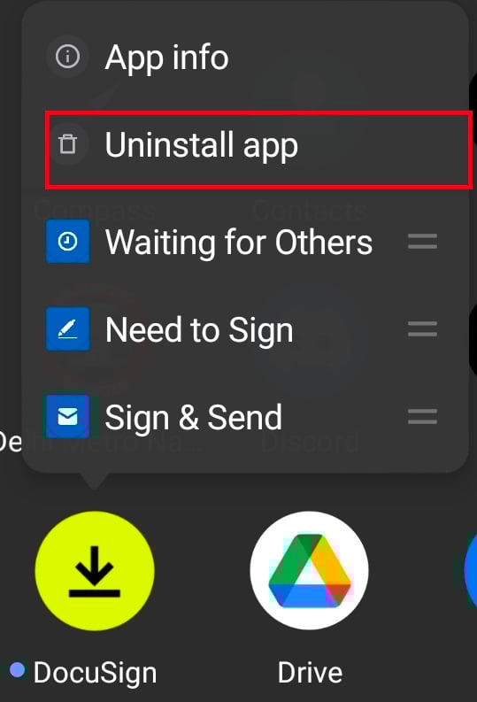 - 추가 기능 아이콘을 길게 누른 다음 제거 를 선택하여 완전히 제거할 수도 있습니다.