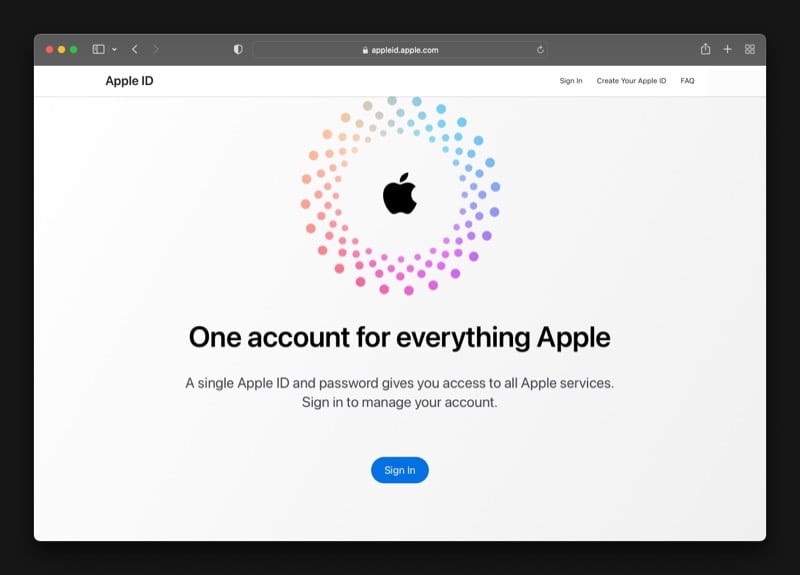 - Safari 또는 다른 웹 브라우저를 열고 Apple ID 계정 페이지를 방문하십시오.