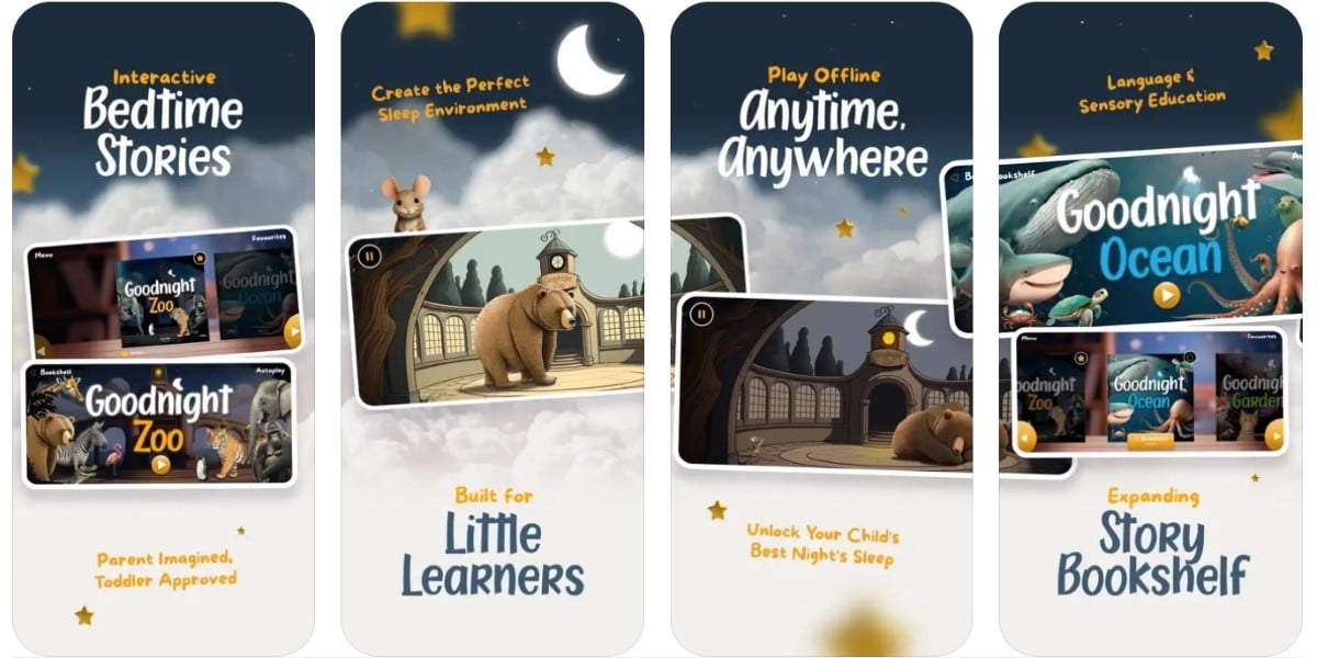 이 앱은 무료로 제공되는 'Goodnight Zoo'로 시작하며, 아이가 학습하고 잠들 수 있도록 즐거운 방법을 제공합니다. 이 스토리텔링 앱은 화려한 이미지나 과격한 음악으로 가득 차 있지 않고 아이가 숙면을 취할 수 있도록 차분함에 중점을 두고 있습니다. 이 이야기는 또한 ADHD, 자폐증, 간질을 앓고 있는 어린이들을 염두에 두고 있습니다.